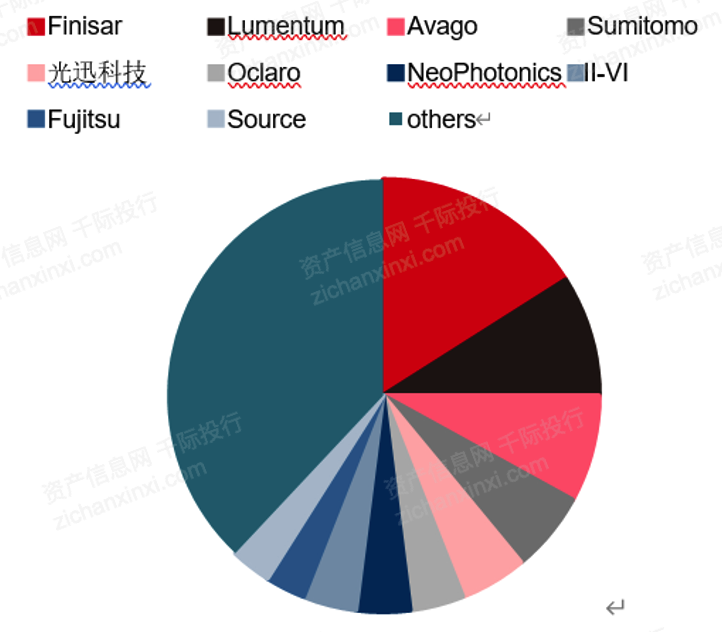 全球競(jìng)爭(zhēng)者主要有Finisar(FNSR)、應(yīng)用光電公司Applied Optoelectronics(AAOI)、NeoPhotonics(NPTN)、Acacia Communications(ACIA)、Oclaro(OCLR)等。