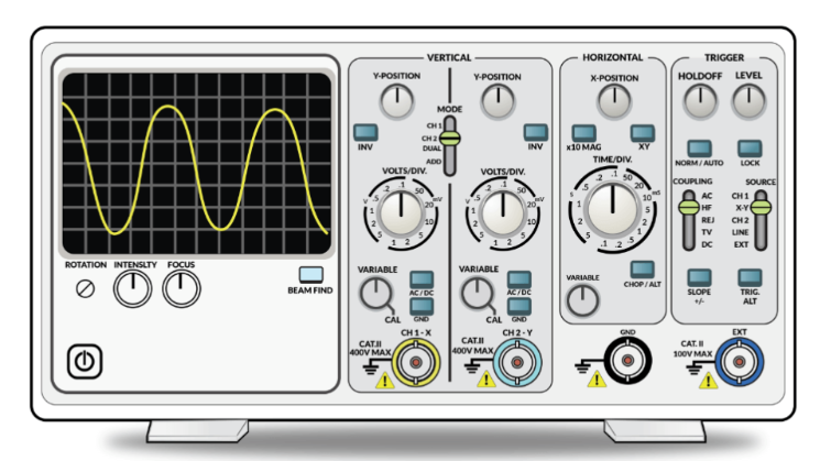 示波器是一種電子測(cè)試和測(cè)量?jī)x器,以 X-Y 圖的形式以圖形方式顯示電信號(hào)。在這里,水平(X)表示時(shí)間,垂直(Y)軸表示電壓大小。因此,示波器本質(zhì)上顯示電信號(hào)電壓如何隨時(shí)間變化的圖表。因此,早期的示波器被稱為示波器。