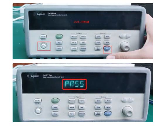 首先我們開機(jī)按:shift+開機(jī)電源鍵,聽到儀器“嘀”聲后即可,看到儀器顯示PASS,說明已經(jīng)通過開機(jī)自檢。