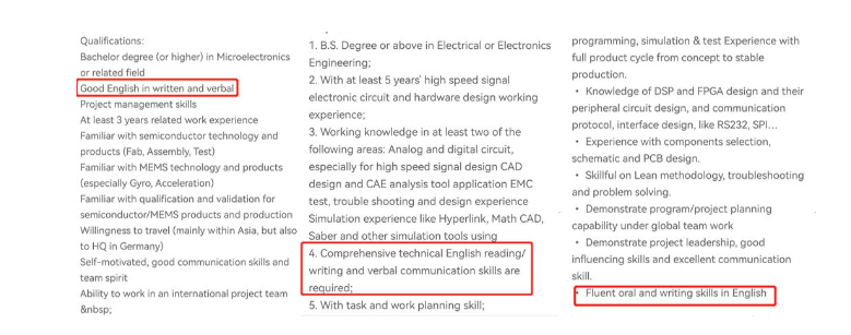 毫無疑問,當(dāng)今電子行業(yè)站在世界前列的仍然是國外。工程師在做硬件設(shè)計(jì)的時(shí)候,需要閱讀大量的外文資料。有的工程師英語基礎(chǔ)薄弱,閱讀的時(shí)候使用翻譯軟件逐行翻譯,效率很低。你如果精通英文,可以直接閱讀世界上先進(jìn)的技術(shù)文檔,用流利的口語與世界各地的工程師對話,在專業(yè)和職業(yè)上得到的機(jī)會也會更多。
