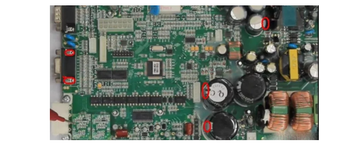 仔細(xì)的觀察這個電路板相關(guān)的元器件,每一個電容還有電阻等都要觀察,看看是不是有發(fā)黑的狀況出現(xiàn)。由于電阻是沒法觀看的,只能用儀器來進(jìn)行測量。相關(guān)的壞件要及時的更換。