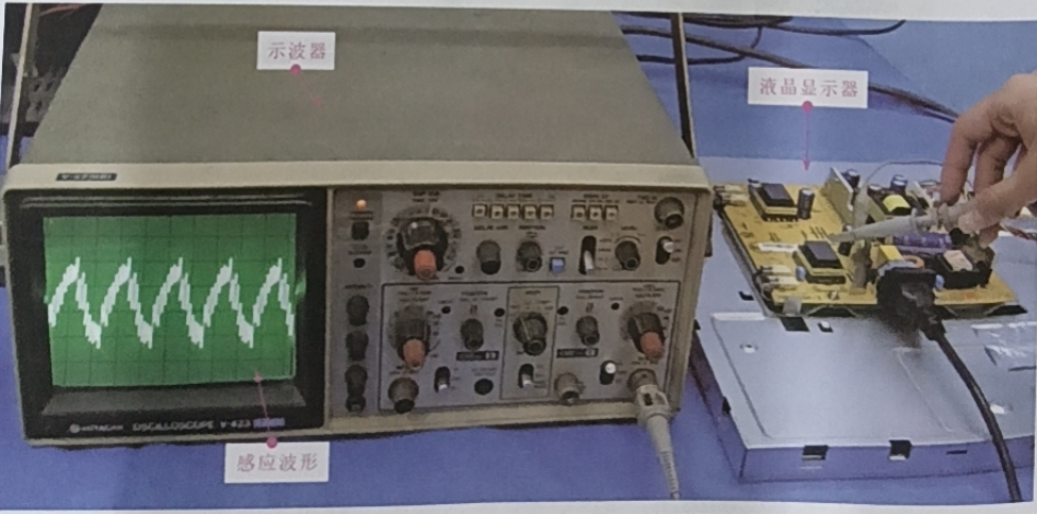 在檢修顯示器的主電路板時(shí),可使用示波器檢測(cè)主電路中輸出的信號(hào)波形,根據(jù)信號(hào)波形進(jìn)行檢修和判斷。用示波器檢測(cè)逆變器電路中升壓變壓器外圍輻射的信號(hào)波形,如圖所示。