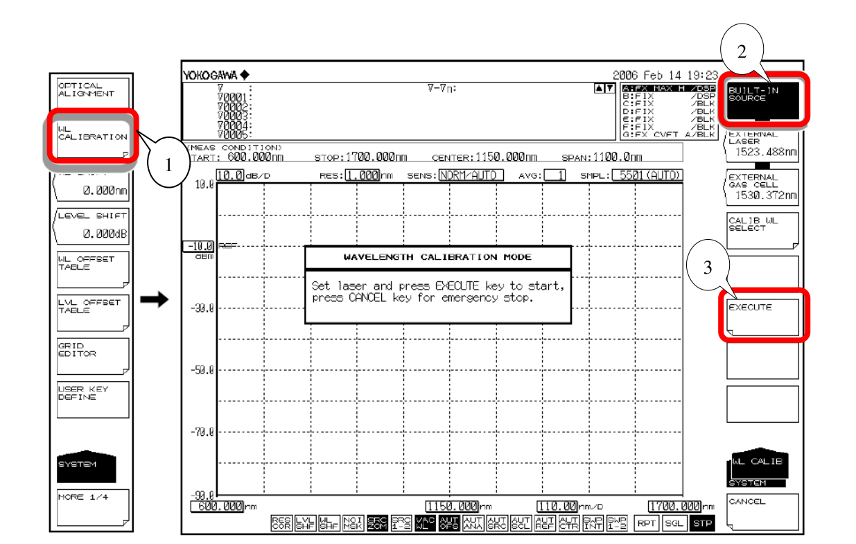 ③按 EXECUTE 軟鍵,執(zhí)行波長校準(zhǔn)。 校準(zhǔn)結(jié)束后,返回之前得畫面。