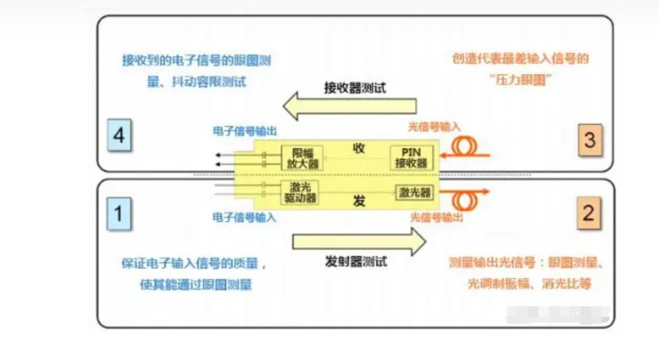 常見設(shè)備有高速示波器、波形發(fā)生器、光模塊、光衰減器、光纖、時鐘源、同步接收器等。其中光衰減器可用于調(diào)節(jié)輸入的光信號強(qiáng)度。