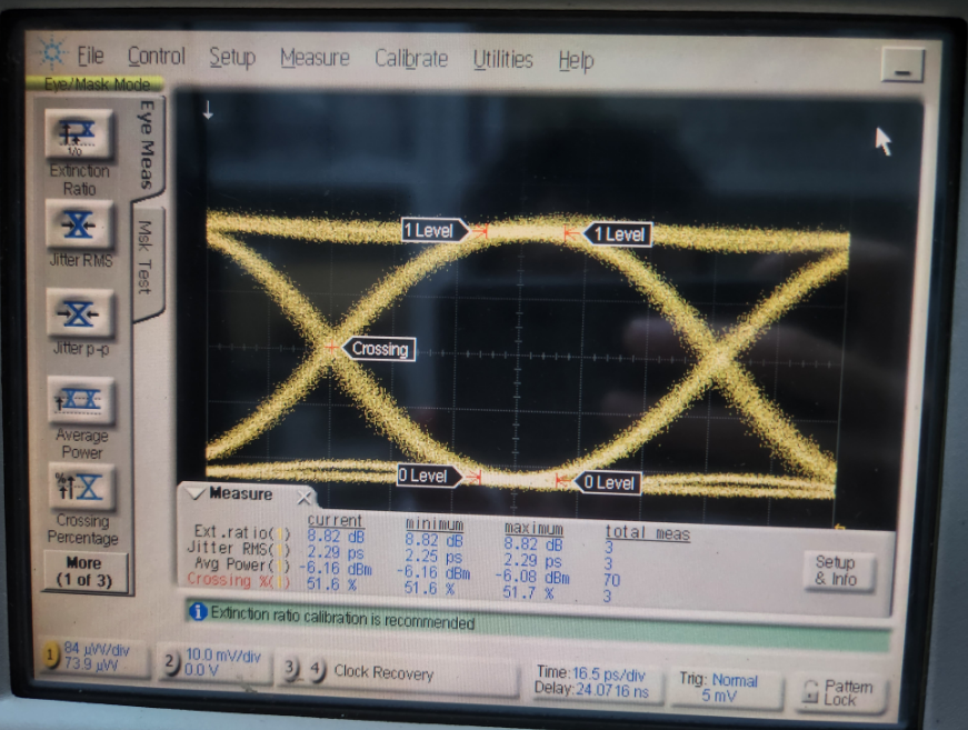打開DCA-X86100D(86105C)光示波器的電源開關(guān),等待設(shè)備自檢完成,進(jìn)入待機(jī)狀態(tài)。連接光纖