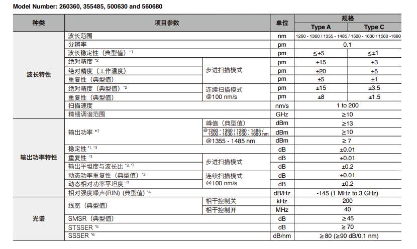 波長范圍1240至1680nm可選,輸出功率 高達20mW。TSL-570采用全新密封激光腔可以保證全波 段無跳模,并在每個波長提供穩(wěn)定的輸出。其具有0.1pm的 分辨率、亞皮米級的精度和領先市場的90dB/0.1nm超低水 平的信噪比。 TSL-570可以和Santec的光功率計、光開關(guān)、偏振控制器 無縫搭配,為WDL和PDL測試提供完整的解決方案。