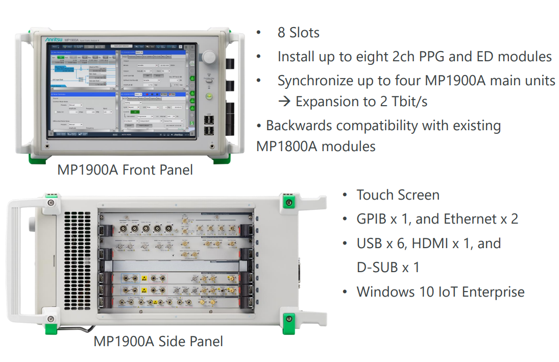 Anritsu展示了其BERTWave MP2110A與MP1900A 56G PAM4 BERT能夠結(jié)合起來提供針對(duì)400Gbps光芯片與模塊的TDECQ測(cè)量。這表明MP1900A是MP2110A的一個(gè)相關(guān)產(chǎn)品,且兩者可以協(xié)同工作以進(jìn)行特定類型的測(cè)試。