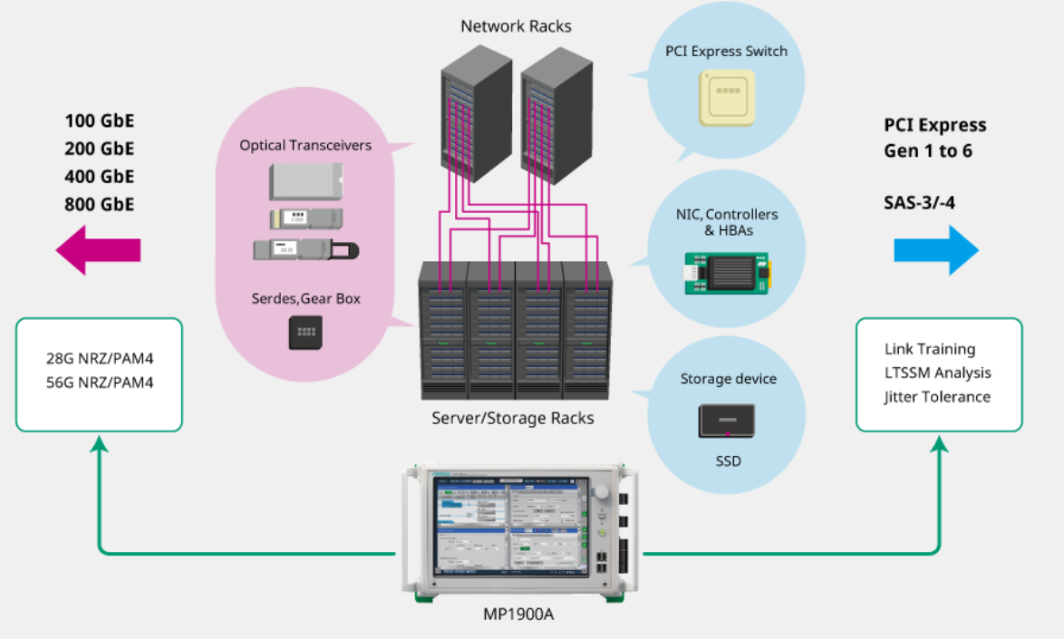 MP1900A是一款信號(hào)質(zhì)量分析儀(誤碼測(cè)試儀),主要用于高速電子設(shè)備、芯片、存儲(chǔ)卡以及400GbE通信設(shè)備的測(cè)試。它支持廣泛種類接口,能夠精確測(cè)量包括M2M及IoT應(yīng)用用到的下一代高速電器件及光器件、高端服務(wù)器使用的光收發(fā)器、通信設(shè)備以及光通信模塊。此外,MP1900A還增強(qiáng)了其PCIe接收機(jī)測(cè)試能力,適用于數(shù)據(jù)中心各種高速互連模塊的測(cè)試應(yīng)用。目標(biāo)市場(chǎng)包括高端服務(wù)器、高性能計(jì)算機(jī)和400GbE通信設(shè)備。