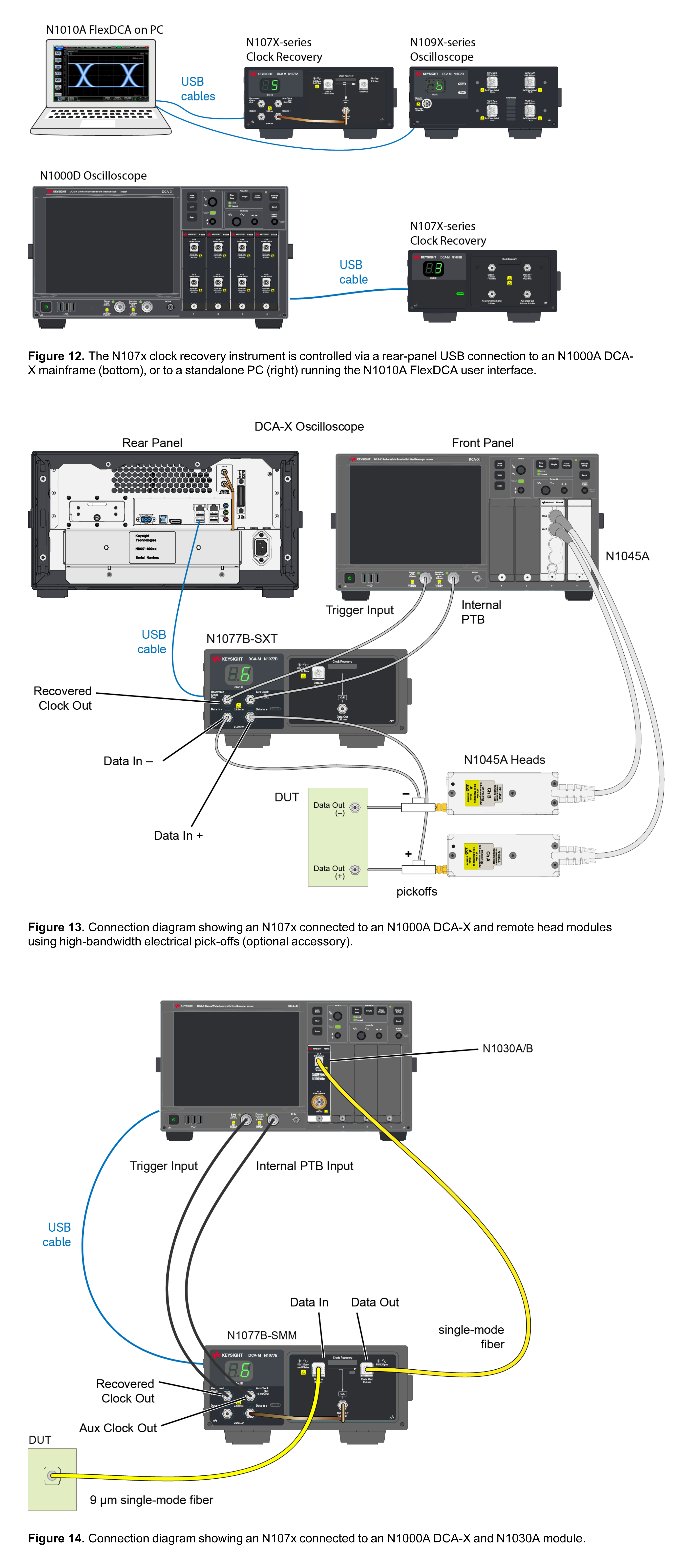 Keysight官網(wǎng)提供的N107X系列用戶手冊(cè)中包含了關(guān)于如何設(shè)置時(shí)鐘恢復(fù)DCA-M模塊的關(guān)鍵信息和指南。具體來說,用戶可以學(xué)習(xí)到如何進(jìn)行外部布線的示例。此外,手冊(cè)還提供了關(guān)于如何使用N1010A FlexDCA軟件通過簡(jiǎn)單的USB 2.0或3.0連接來控制N107X的信息。對(duì)于安裝方面,手冊(cè)中提到了需要一個(gè)用戶提供的PC運(yùn)行N1010A FlexDCA軟件,并且詳細(xì)說明了如何將N107X系列DCA-M與N1092D連接,以及如何將待測(cè)量的光信號(hào)連接到相應(yīng)的接口。