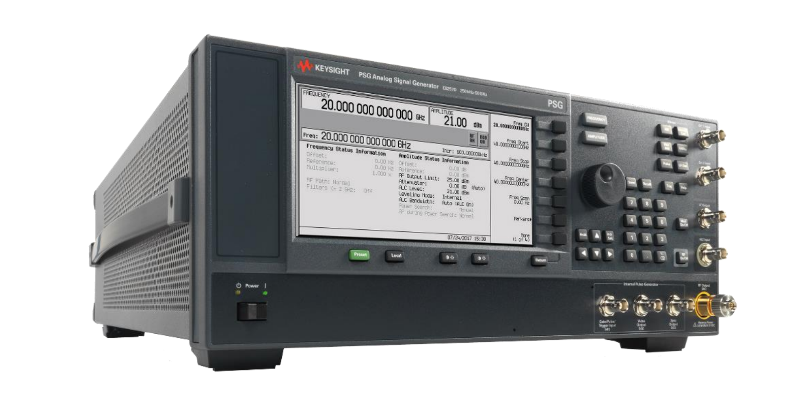 Keysight E8257D 覆蓋了從230 kHz到47 GHz的寬頻率范圍,并且在0至55°C的溫度范圍內工作,需要45分鐘的預熱時間才能達到其技術指標。