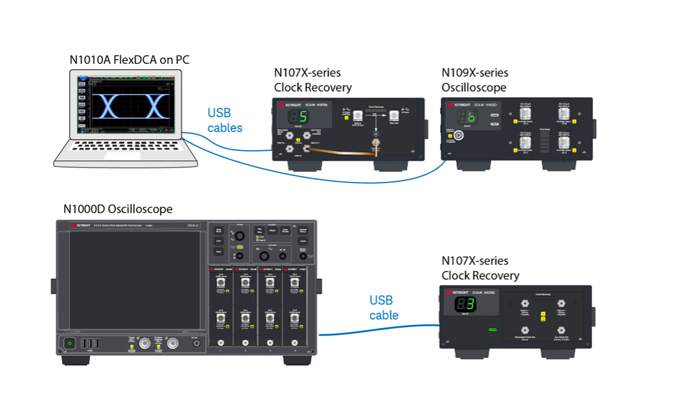 在自動測試系統(tǒng)環(huán)境中,通過LAN將主測試系統(tǒng)PC連接至低成本的電腦上,F(xiàn)lexDCA界面駐留在第二臺PC上。然后,第二臺PC通過USB連接至N1092A。
