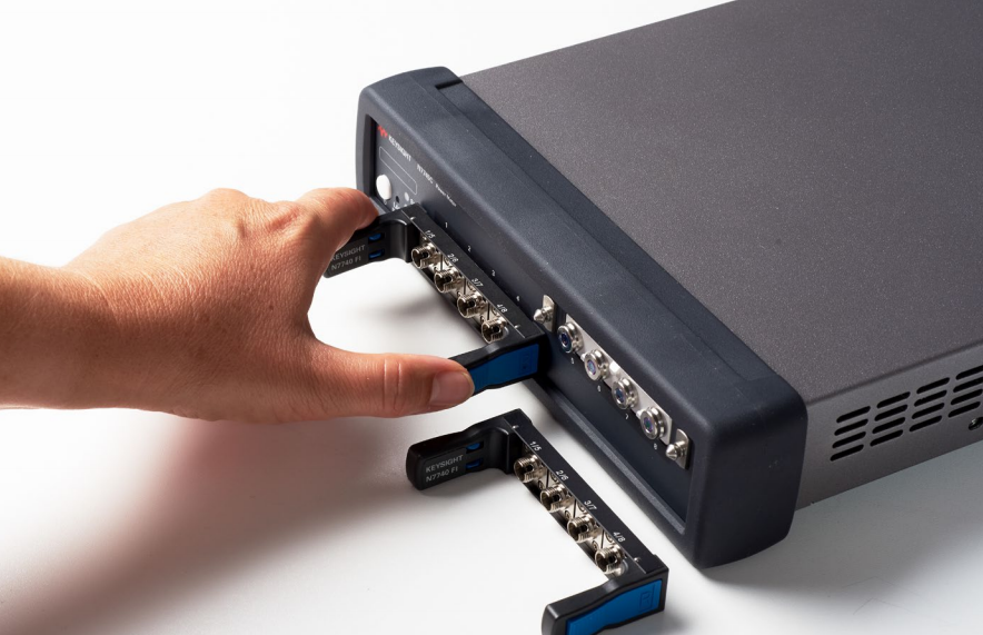 N7744C 同樣也采用了深受信賴的 N7740 光纖連通性概念,通過(guò)配有快速鎖定卡扣的四路光纖適配器進(jìn)行連接。 即使儀器正在測(cè)量其他器件,可以輕松地將被測(cè)器件連接到四路光纖適配器。