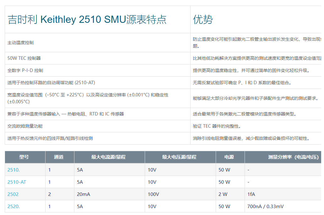 2502型光電二極管計是專門針對激光二極管模塊(LDM)的生產(chǎn)測試而設(shè)計的,極大增強了吉時利LIV(光-電流-電壓)測試系統(tǒng)的產(chǎn)能。這款產(chǎn)品是與頂尖的LDM制造商的密切合作下,針對光纖通信網(wǎng)絡(luò)而研發(fā)的,這款雙通道儀器的特點在于能夠與其他系統(tǒng)元件輕松同步,實現(xiàn)對光功率測量的密切控制。