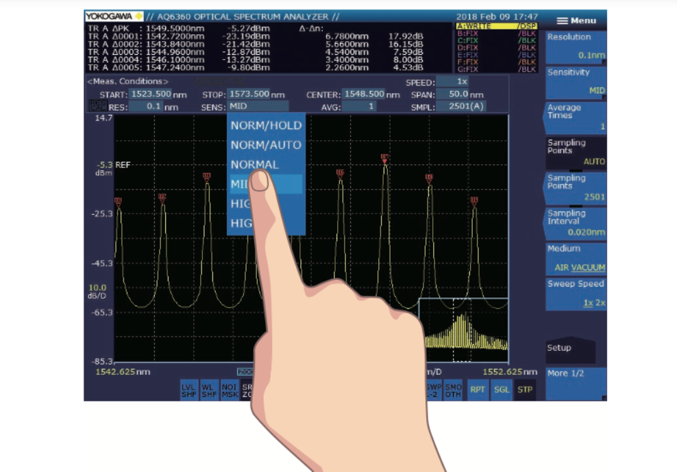 AQ6360沿用了我們OSA系列的屏幕和菜單布局――全世界數(shù)以千計(jì)的用戶公認(rèn)的最直觀、最易于使用的布局。