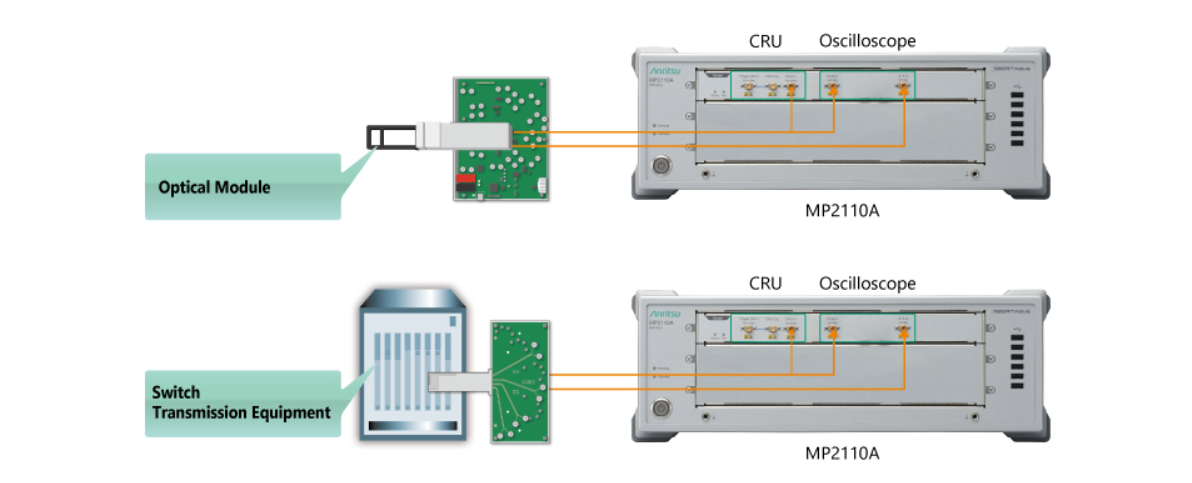 為了評(píng)估光學(xué)通訊系統(tǒng)中使用的光學(xué)模塊,需要使用 BERT 和采樣示波器。在此之前,評(píng)估 QSFP28 和 SFP28 等典型的光學(xué)模塊需要使用獨(dú)立的 BERT 和采樣示波器,但有了內(nèi)置 4 通道 BERT 和雙通道采樣示波器的一體化 BERTWave MP2110A,就無(wú)需再使用單獨(dú)的儀器,從而降低了儀器投入資本和生產(chǎn)成本。